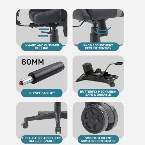 – Mechanism : Butterfly Mechanism (3-Stop Adjustable Back Rest)