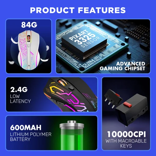 Armaggeddon Mikoyan Foxbat 3 Wireless Gaming Mouse | 10000 CPI | 7 Color Pulsating Effect | Rechargeable | Wireless 2.4G